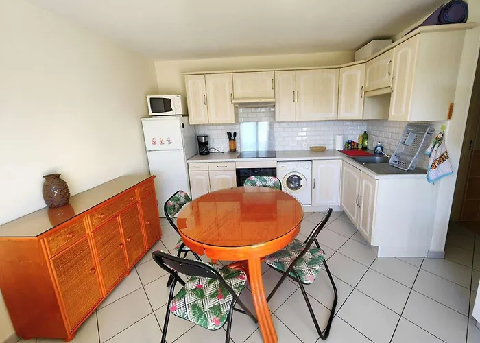 T2 Pour 4 Pers, Jardin, Parking Prive, A 100M De La Mer - Fr-1-607-190 apartment includes an equipped kitchen where guests can cook and enjoy homemade meals. The nearest airport is Beziers, 20 km from this accommodation, and Village Vacances CCAS bus station is around 100 metres away.